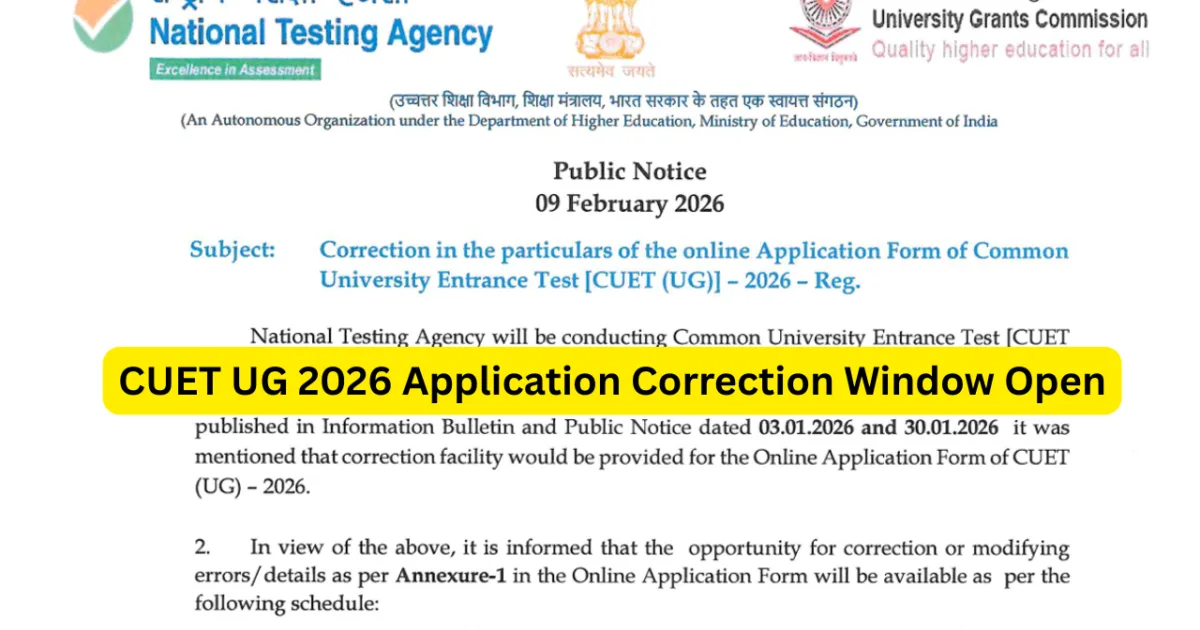 CUET UG 2026 Application Correction Window Open: The National Testing Agency has opened the CUET UG 2026 application correction window for candidates who have already submitted their forms. The correction facility allows students to make their final corrections to mistakes they made during the application process. Candidates will lose their opportunity to make changes after the correction window has ended.