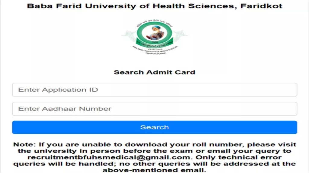 For your information, candidates who are unable to download their roll number should visit the university in person or email recruitmentbfuhsmedical@gmail.com.