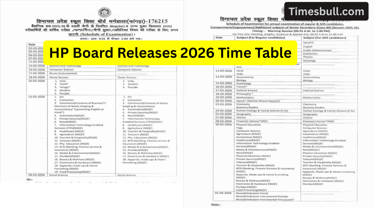 HP Board Releases 2026 Time Table. The Himachal Pradesh Board of School Education (HPBOSE) has finally put an end to the wait for the annual examinations for Class 10 and 12. The board released the exam date sheet 2026, stating that the main examinations for both classes will begin on March 3, 2026. The timetable has been uploaded on the board’s official website, hpbose.org, where all students can easily download it.