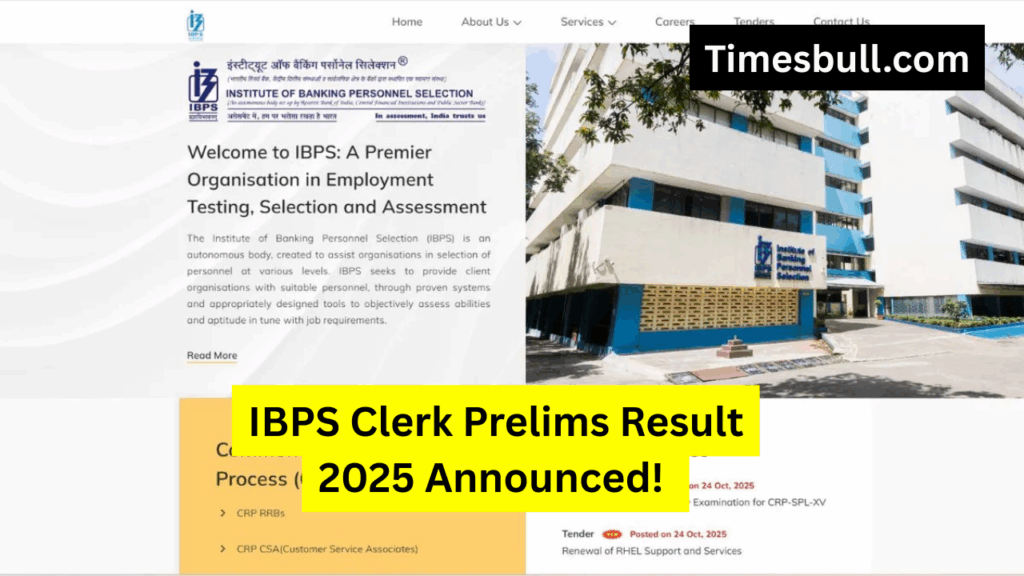 - Click on the IBPS Clerk Prelims Result 2025 link on the homepage.