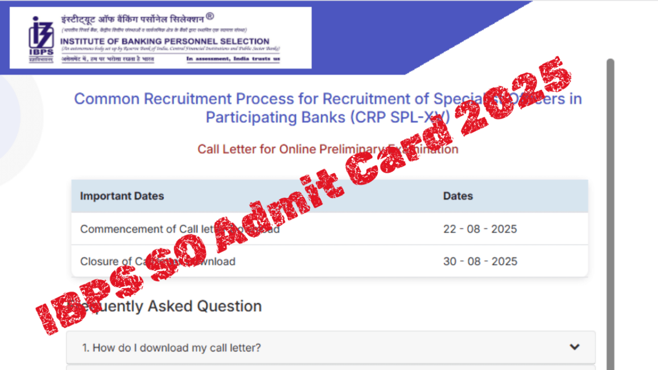 IBPS SO Mains Admit Card 2025 Released. Candidates preparing for the IBPS Specialist Officer (SO) Mains exam have some welcome news. The Institute of Banking Personnel Selection has released the admit cards for the IBPS SO Mains exam. Candidates who passed the Preliminary exam can now download their admit cards by visiting the official website, ibps. In.