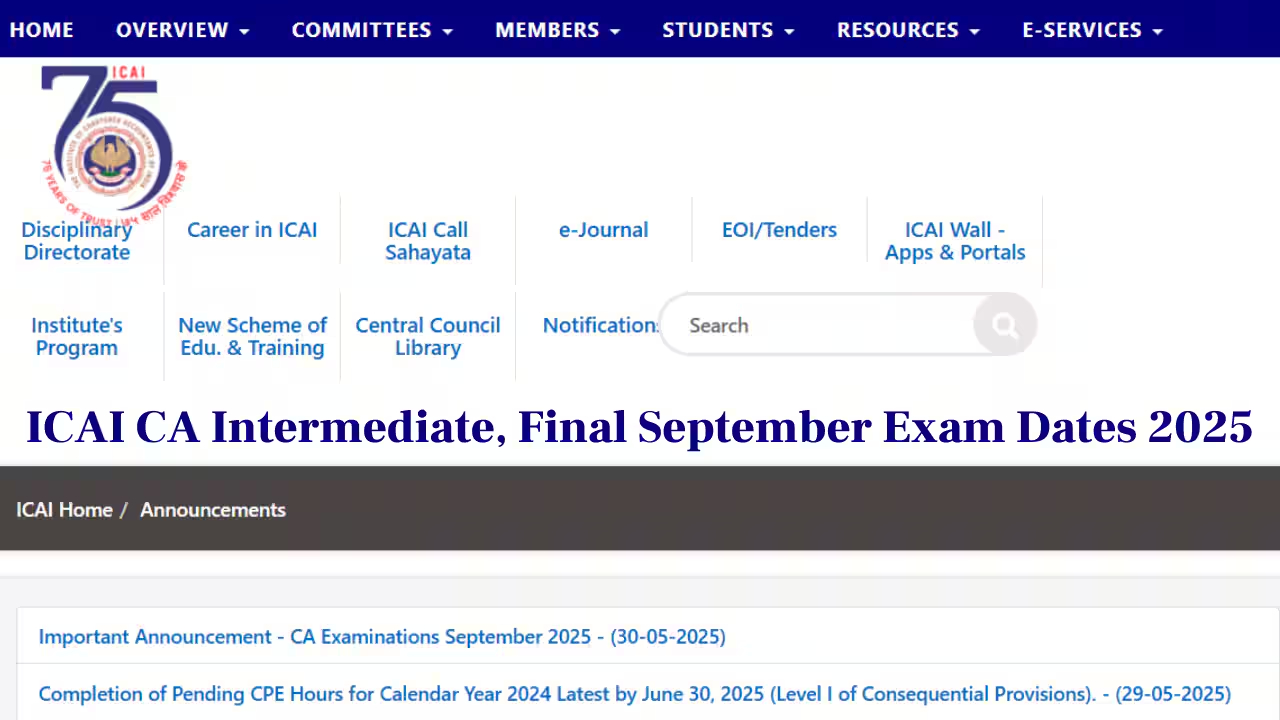 In September 2025, the mode of examination at all levels will be offline. The CA Final examination is scheduled as follows: Group I-September 3, 6, and 8; Group II-September 10, 12, and 14. The Group I CA Intermediate examination will be conducted on September 4, 7, and 9, respectively, while the Group II examinations will be conducted on September 11, 13, and 15. It is expected that the Foundation exams will last four days, from September 16, 18, 20, and 22.