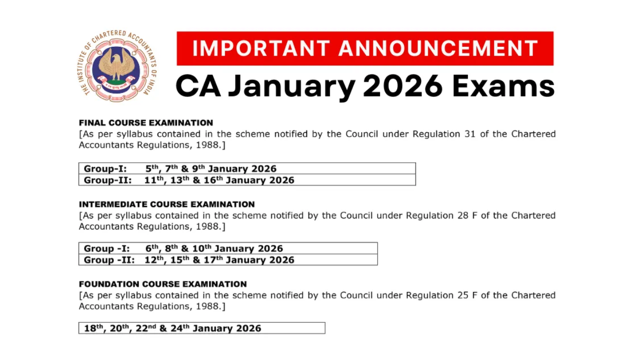 • CA Foundation Exam: January 18, 20, 22, and 24, 2026