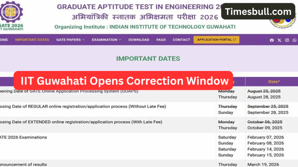 IIT Guwahati Opens Correction Window. If you are pursuing higher education and have applied for GATE 2026, then IIT Guwahati has activated the GATE 2026 Application Correction Window. Candidates who have already completed the application process can now make necessary corrections to their information through the GOAPS portal (goaps.iitg.ac.in). This correction facility opened for candidates on October 28th, and the deadline for making changes is November 3rd, 2025.