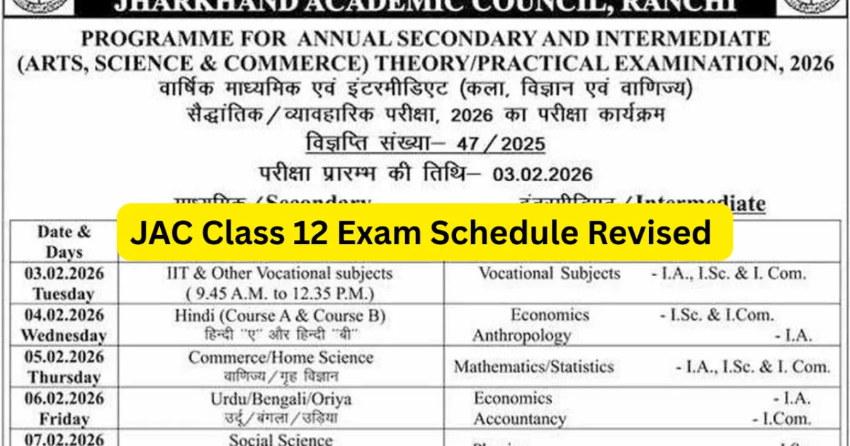 JAC Class 12 Exam Schedule Revised Official Website Link – Click Here