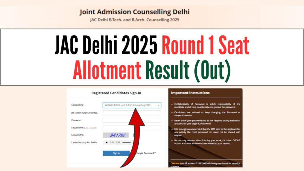 JAC Delhi Seat Allotment Result 2025 Out : The Round 1 result of allotment has been officially declared closed and published by the Joint Admission Committee 2025 for all aspiring candidates for B.Tech and B.Arch courses who registered for admission into various prestigious institutes in Delhi through jacdelhi.admissions.nic.in.