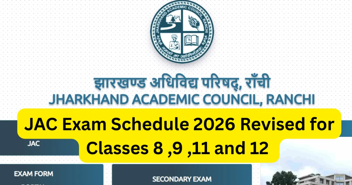 JAC Exam Schedule 2026 Revised for Classes 8 ,9 ,11 and 12 : The Jharkhand Academic Council has changed the exam schedule for Class 8, 9, 11 and 12 throughout the academic year. The board established a new timetable after administrative reasons forced the schedule change so students can study according to the modified timetable. The adjustment establishes a testing process which runs smoothly while maintaining protection from clashes with essential state events.