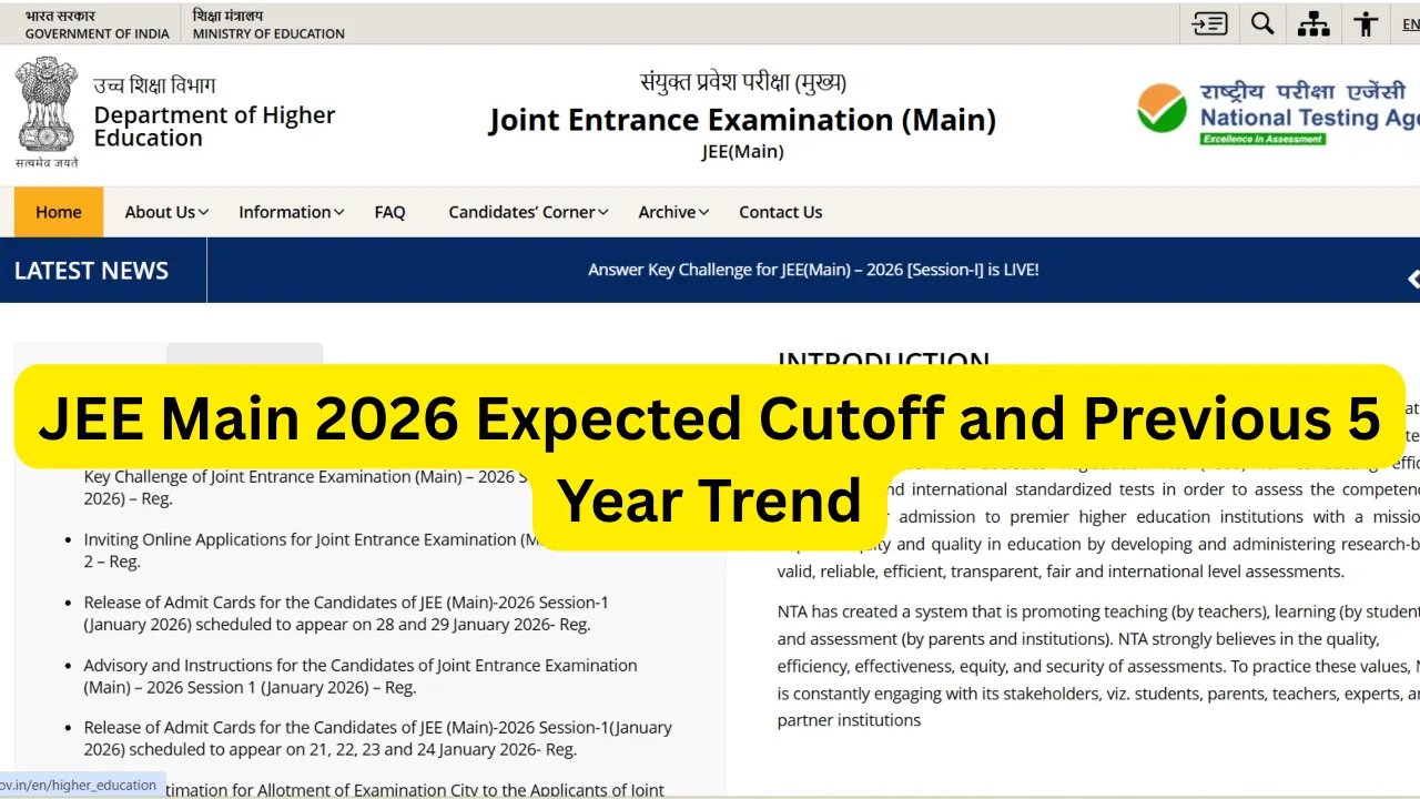 JEE Main 2026 Expected Cutoff and Previous 5 Year Trend : The establishment of JEE Main 2026 cutoff marks essential advancement for students who prepare to take engineering entrance examinations. The National Testing Agency announces cutoff results at the same time it reveals all examination results together with the complete exam outcome announcement. The academic institution uses percentile scores to identify candidates who achieve eligibility requirements for JEE Advanced testing and subsequent admission processes.