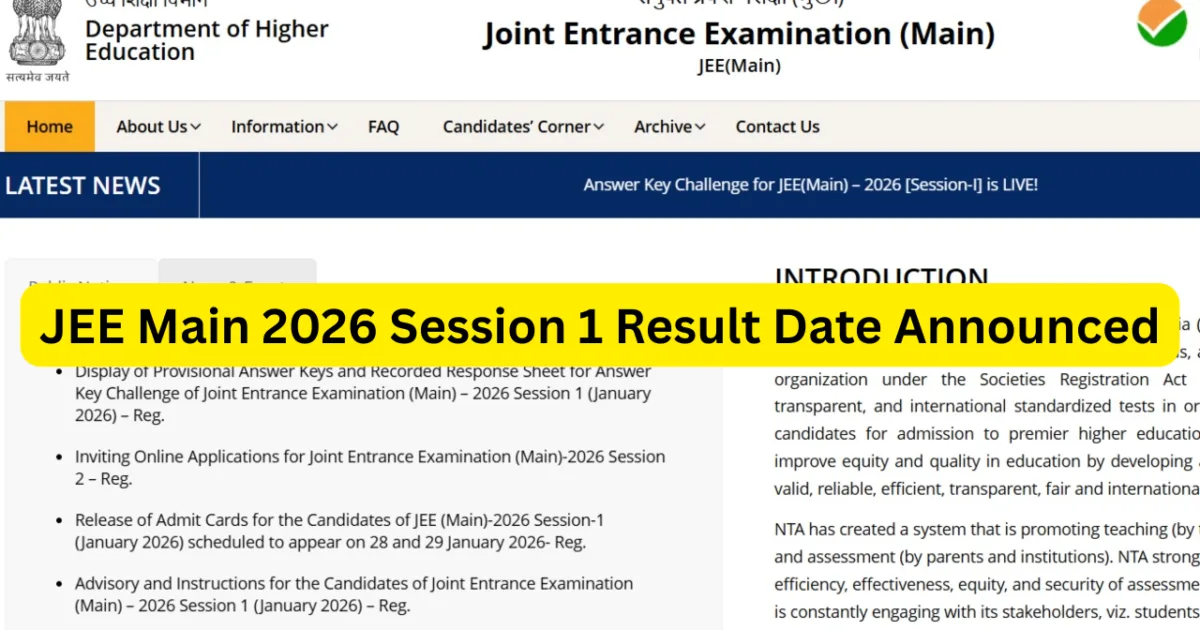 JEE Main 2026 Session 1 Result Date Announced : The National Testing Agency plans to release JEE Main 2026 Session 1 results in the near future. The candidates who finished the January session now anticipate receiving their scorecards together with their last percentile scores. The results will be available online through the official website which will show the All India Rank and qualification results needed for the upcoming admission process.