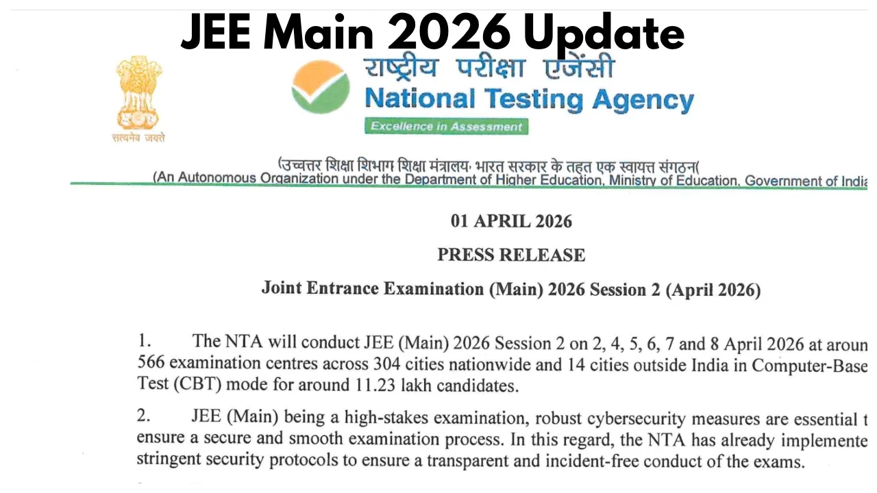 JEE Main 2026 Exam Date Update: The National Testing Agency (NTA) is commencing the second session of the JEE Main 2026 examinations today,April 2,2026,across India and abroad. This examination for B.Tech/B.E. courses will be conducted in a computer-based mode until April 8. Examination centres have been established in 11 cities across Bihar,including Patna,Aurangabad,Bhagalpur,Darbhanga,Gaya,Muzaffarpur,Purnia,Arrah,Samastipur,Bihar Sharif,and Rohtas. Meanwhile,across the state,more than 73,000 candidates are expected to appear for the examination at over 33 centres.