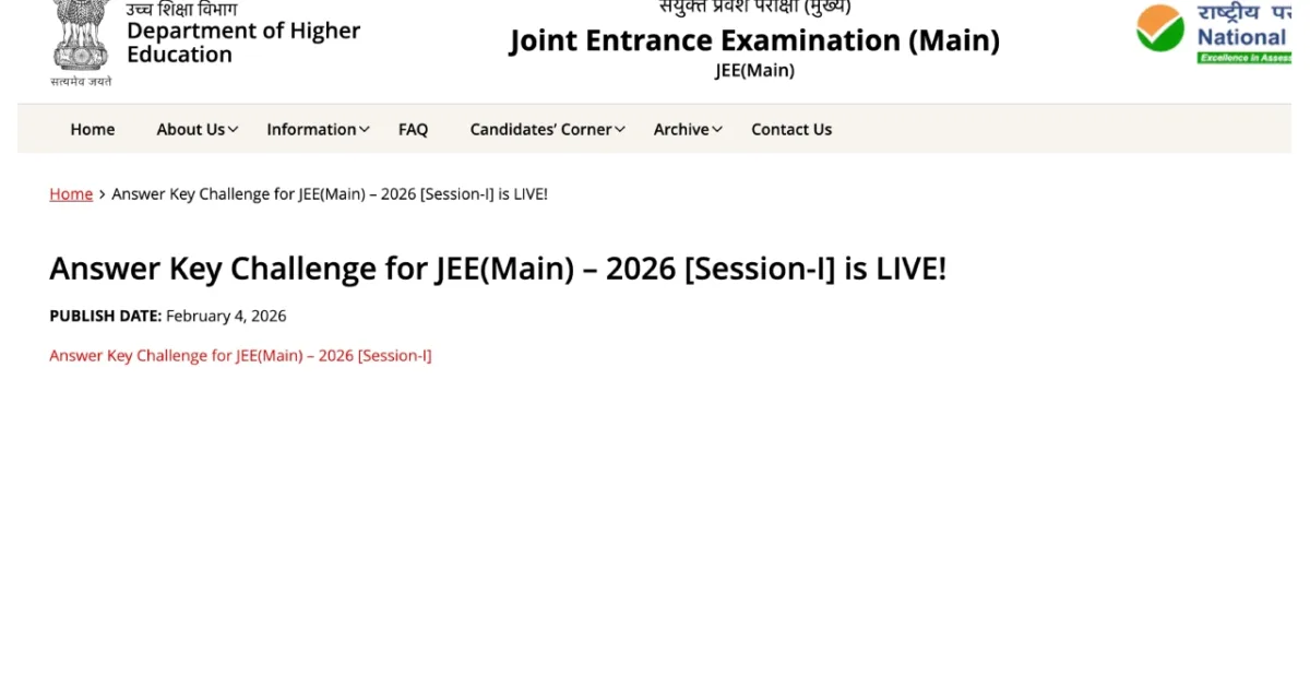 JEE Mains Result 2026 Live Update: The National Testing Agency will release the JEE Main 2026 Session 1 results on February 12, 2026. The JEE Main 2026 results will be announced online on the NTA’s official website, jeemain.nta.nic.in. Students will be able to download their scorecards upon release by entering their application number and password. The NTA JEE Main Session 1 exam was conducted between January 21 and 29.