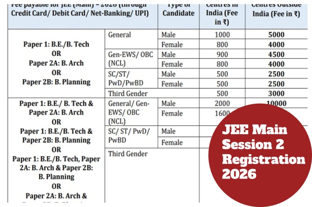 JEE Main Session 2 Registration: The Joint Entrance Examination 2026 Session 1 exams were conducted on January 21, 22, 23, and 24. However, the exams scheduled for January 28 and 29 are yet to be held. Admit cards for these exams have been issued by the NTA and can be downloaded by students from the official website jeemain.nta.nic.in. According to the National Testing Agency’s brochure, registration for the JEE Main Session 2 exam is likely to begin in the last week of January 2026. Therefore, applications are expected to start anytime soon. Students who feel they did not perform well in the Session 1 exam or are looking to improve their scores can apply for Session 2.