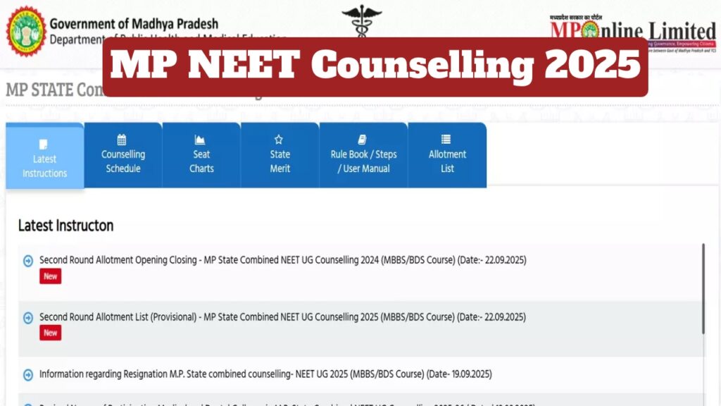 MP NEET Counselling 2025:- MP NEET UG Round 2 counselling seat allotment has been released. Students can check their seat status by downloading the merit list from the official website. Students who registered for the second round of counselling can immediately check their rank/seat status by downloading the allotment list from the DME’s official website, dme.mponline.gov.in.