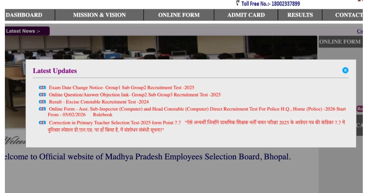 The MPESB conducted the exam on January 28, 2026. A total of 454 candidates are to be recruited through this exam. The results are expected to be released very soon. All candidates are advised to visit the official website regularly for more information on the results.
