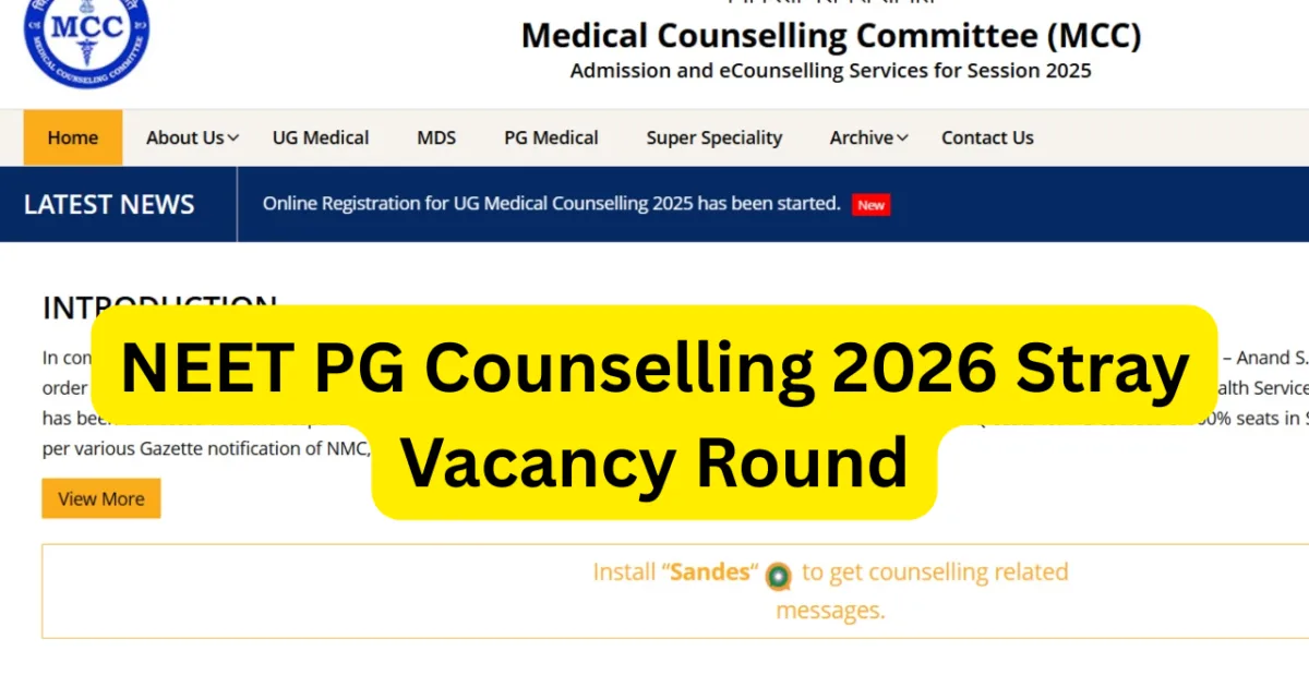 NEET PG Counselling 2026 Stray Vacancy Round : The Medical Counselling Committee has revised the schedule for the NEET PG Counselling 2026 stray vacancy round. The update serves as an essential notification to medical graduates who need to wait for their postgraduate seat allocation or who plan to use their last counseling opportunity. The updated dates were established to handle empty seats with greater efficiency while ensuring that all admissions process complete without any time interruption.