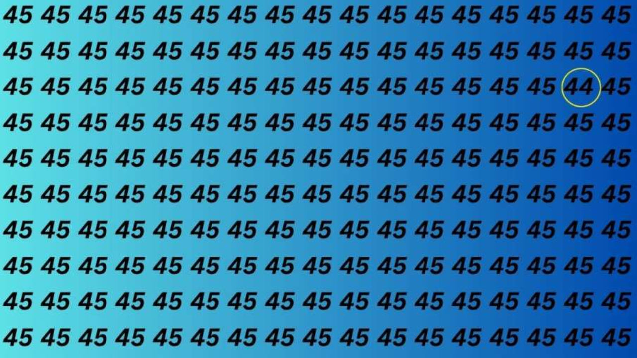 Optical Illusion. Something special always goes viral on social media. A new optical illusion puzzle has intrigued internet users. In this viral image, you’ll see only the number 45 everywhere, but the real task is to find the number 44 hidden among them. It sounds easy, but solving it requires eagle-like eyes.