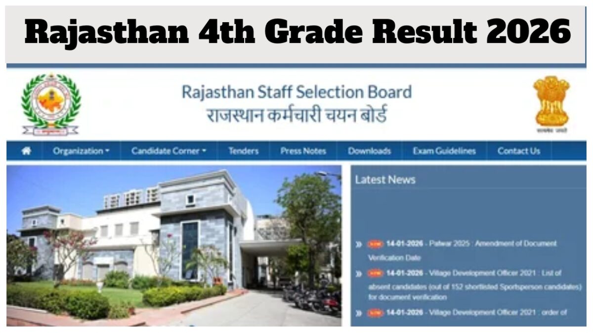 Rajasthan 4th Grade Result Declared: The Rajasthan Staff Selection Board released the Rajasthan 4th Grade Result 2025 on January 16, 2026. Candidates who appeared in the exam can check their results through the official website, rssb.rajasthan.gov.in. The cutoff has also been released along with the results. However, the result link may be released on the website by tonight. The cutoff for the non-TSP area was 146.3279.