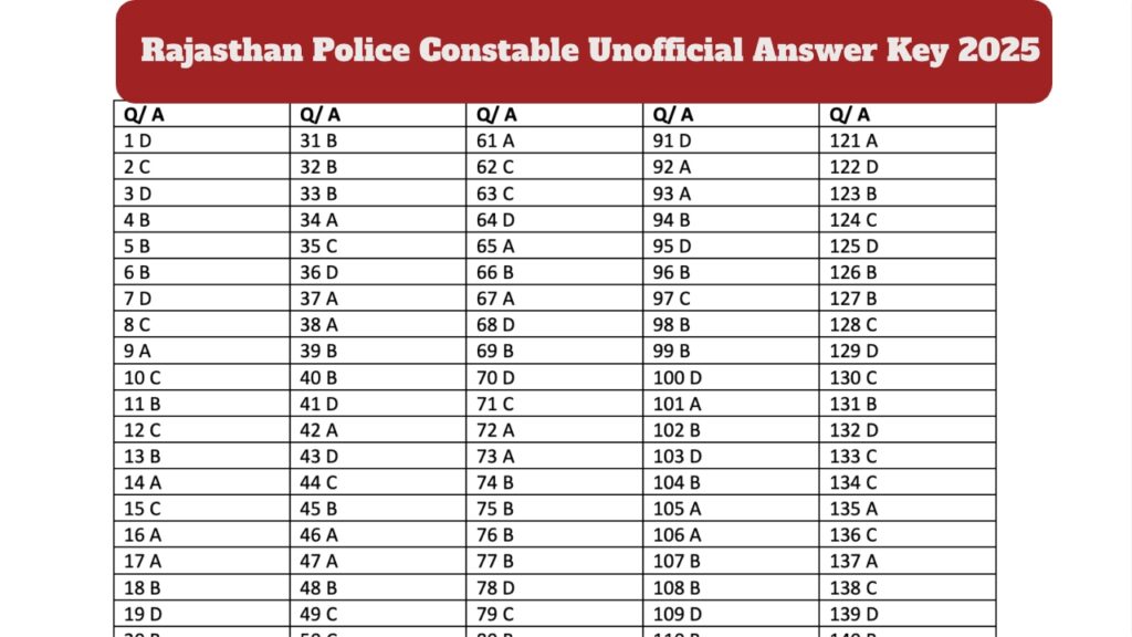 Rajasthan Police Constable Unofficial Answer Key 2025:- Rajasthan Police Constable Recruitment Exam has been completed. This exam was held on 13th and 14th September in various districts across the state. A total of 5 lakh 24 thousand 740 candidates had applied for this exam, out of which 3 lakh 76 thousand 902 candidates appeared in the exam. After completing the exam, candidates eagerly await the Answer Key.
