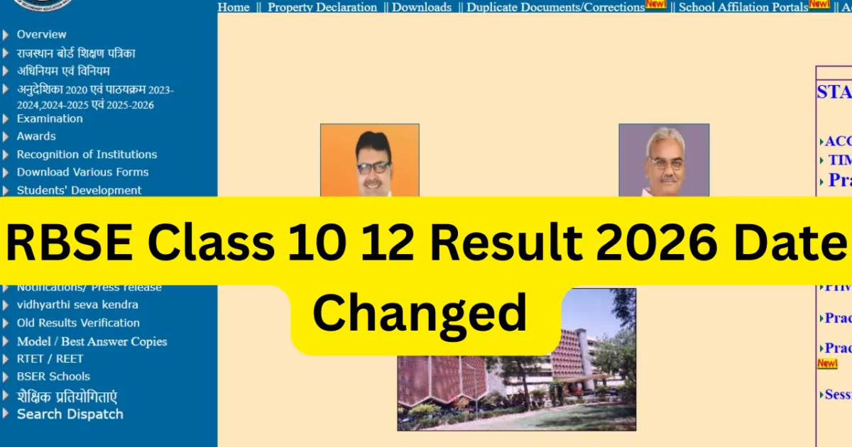 RBSE Class 10 12 Result 2026 Date Changed : The board of secondary education in Rajasthan has adjusted the results date of class 10 and 12 board exams 2026. The new schedule of the results should be noted by students that were taking the annual examinations in RBSE. The board has already confirmed new dates of the declaration of the results and substituted the previous planned dates.