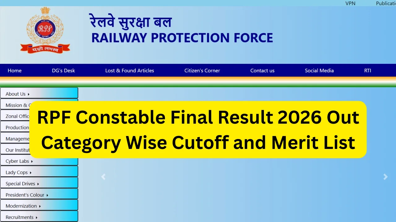 RPF Constable Final Result 2026 Out Category Wise Cutoff and Merit List : The Railway Protection Force has published the RPF Constable Final Result 2026 announcement. The recruitment candidates now have access to their final selection status which they can check through the merit list. The complete cutoff marks which were released at the time of result announcement now form part of the final result declaration.