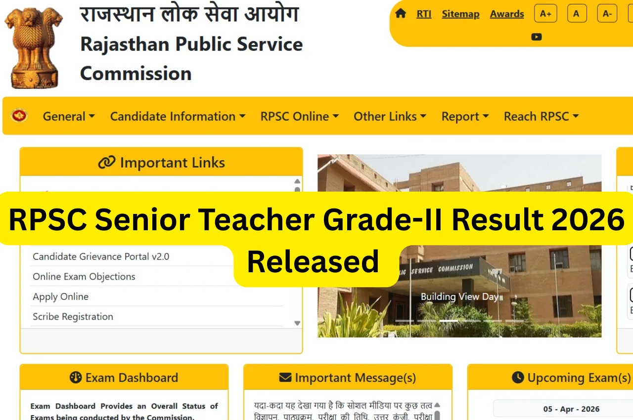 The Rajasthan Public Service Commission (RPSC) has published the Senior Teacher Grade-II Result 2026. Candidates who appeared in the written exam can now download the result PDF and check their names or roll numbers in the list. The result provides information about the candidates who have been selected to continue with the recruitment procedure.