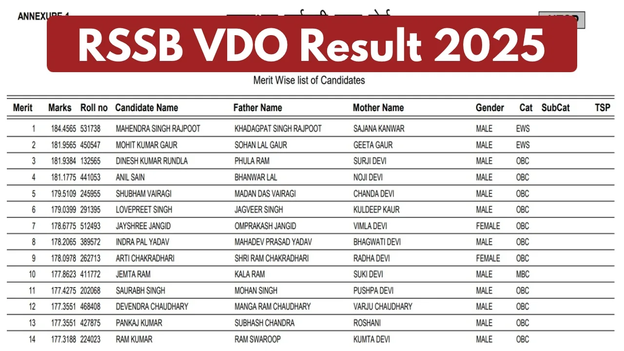 RSSB VDO Result 2025: The Rajasthan Staff Selection Board (RSSB) has released the Gram Vikas Adhikari (Village Development Officer) result. Candidates who appeared for the exam can now check and download their results from the official website. The Gram Vikas Adhikari exam result is available for download as a PDF. The exam was conducted on November 2, 2025.