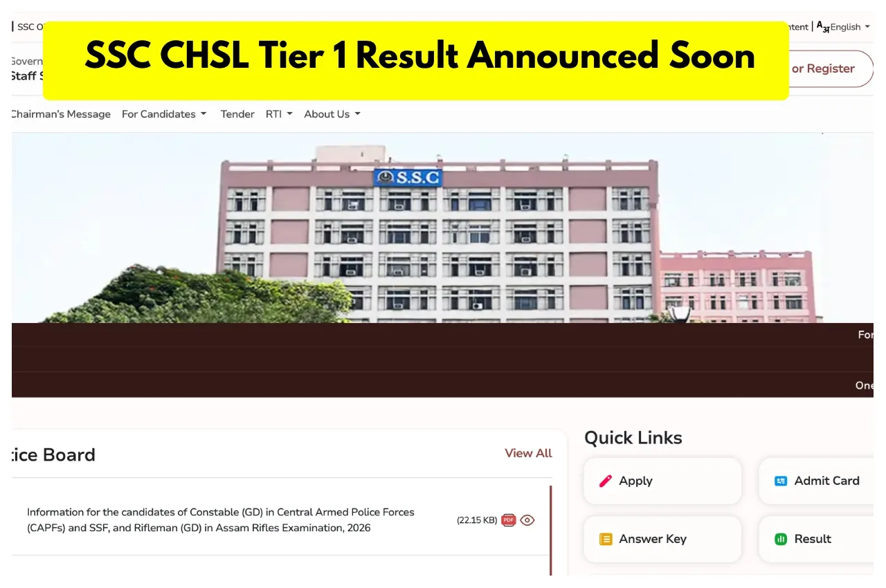 SSC CHSL Tier 1 Result 2025 Announced Soon: The Staff Selection Commission is expected to release the CHSL Tier 1 results very soon. The exam was conducted from November 12th to November 30th, 2025, at various exam centres, and millions of candidates are awaiting the results. According to media reports, the Staff Selection Commission may release the exam results very soon. It is being said that the results may be released by the end of February. In this case, candidates will be able to check their results online very soon on the official website, ssc.gov.in.