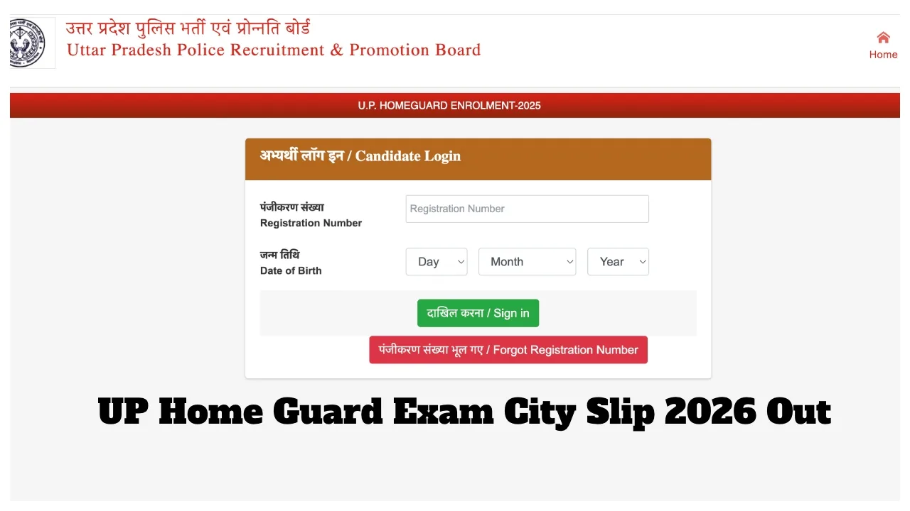To download the exam city slip, candidates will need to enter their registration number and date of birth. The exam will be held on April 25, 26, and 27. Admit cards for the exam will also be released soon. Let’s learn how to download the UP Home Guard Exam City Slip 2026.