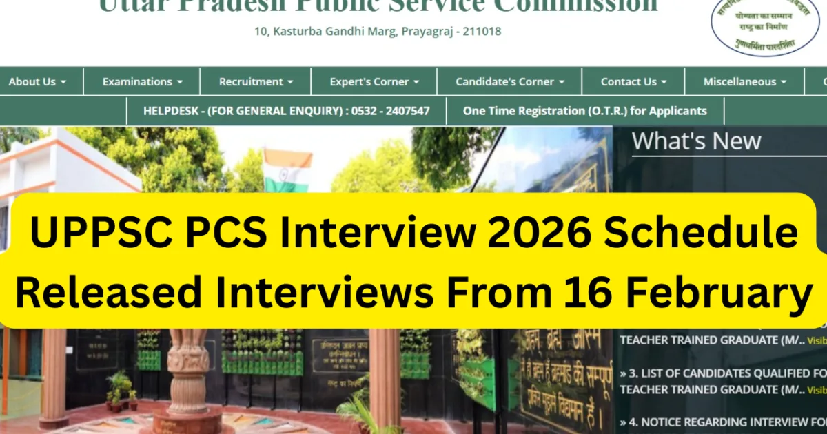UPPSC PCS Interview 2026 Schedule Released Interviews From 16 February : The UPPSC PCS Interview 2026 schedule has been released. The update shows vital information for candidates who passed the PCS mains exam and now wait for their final selection stage. The interview process will start from 16 February 2026.