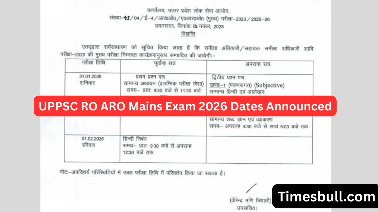 According to the notice issued by UPPSC, the RO-ARO 2023 Mains Exam will be conducted on January 31, 2026, and February 1, 2026.