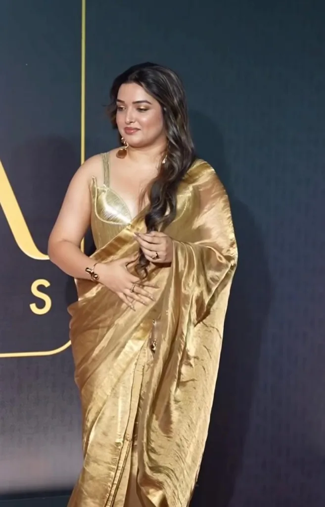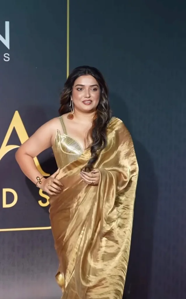 A video of the duo has recently gone viral, showcasing a chemistry that is leaving everyone mesmerized. Amrapali Dubey, looking stunning in a golden saree with her hair left loose, has completely blown everyone away with her beauty.