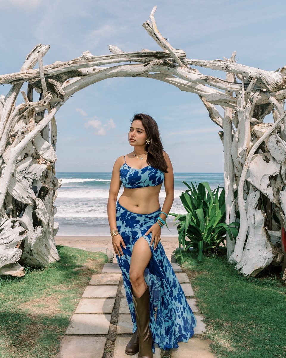 The actress looks very beautiful in a blue-coloured crêpe dress. Everyone is giving a lot of love to this picture of her. Her different hot poses and beauty have set the internet on fire.