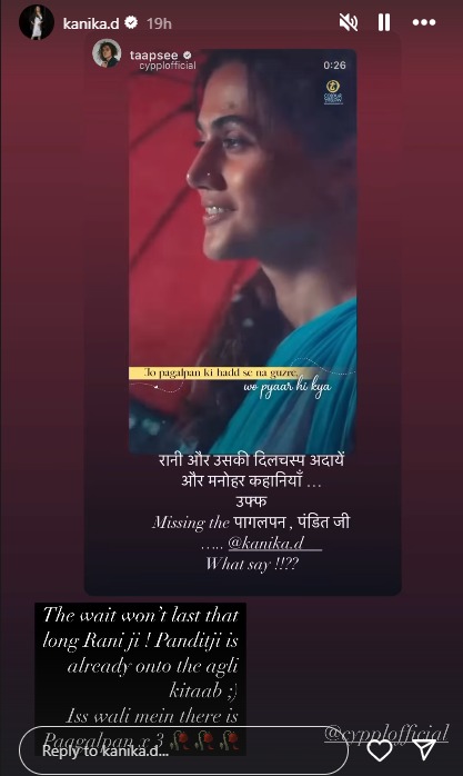 Although the makers have not yet released the poster or teaser for the third part, these posts of Taapsee and Kanika have created a stir on social media. Fans are asking, “What is Rani going to do now?” and “Will Panditji survive this time too?”