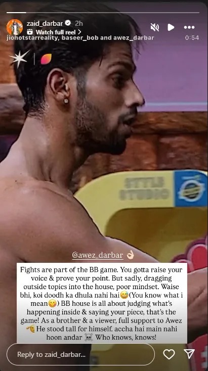 He further added, “Anyway, no one is pure (you know what I mean). In Bigg Boss, only what is happening inside the house is judged.” Zaid openly supported his brother, Zaid gave full support to Aawaz as a brother and a viewer and said, “Aawaz raised his voice for himself, this is a very good thing.” He also said, “It is good that I am not inside.” This post of Zaid is becoming increasingly viral on social media. People on social media are trolling Basir for this act and are supporting Aawaz.