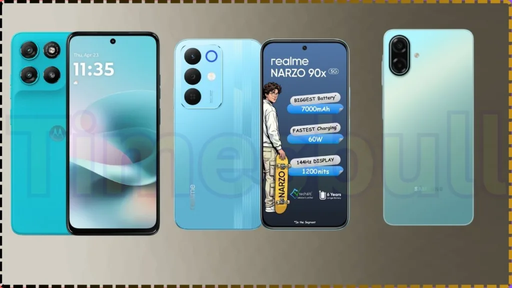 Realme Narzo 90x 5G phone features a large 7000 mAh battery pack with faster 60W charging support. It is built for the younger always on user and features a large 6.8 inch FHD+ LCD display with 144 Hz refresh rate which provides smooth scrolling and it is powered by MediaTek Dimensity 6300 chipset.