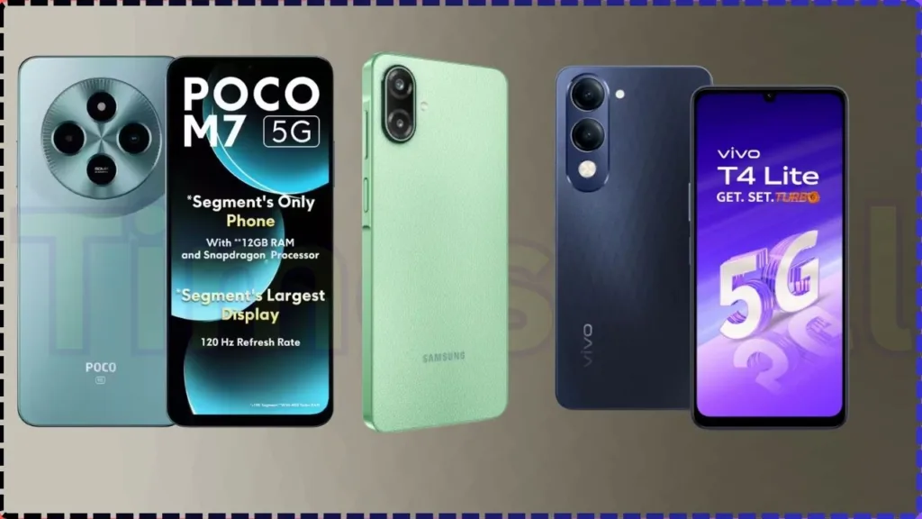 Vivo T4 Lite 5G phone is powered by MediaTek Dimensity 6300 chipset and it also features a large 6000 mAh battery pack with 15W charging support and it sports 6.74 inch HD plus LCD display with 90 Hz refresh rate. In the rear section it features 50 MP + 2 MP camera whereas in front it has 5 MP selfie camera. The phone comes with slim design despite the large battery and it is currently priced around 10,999 rupees.