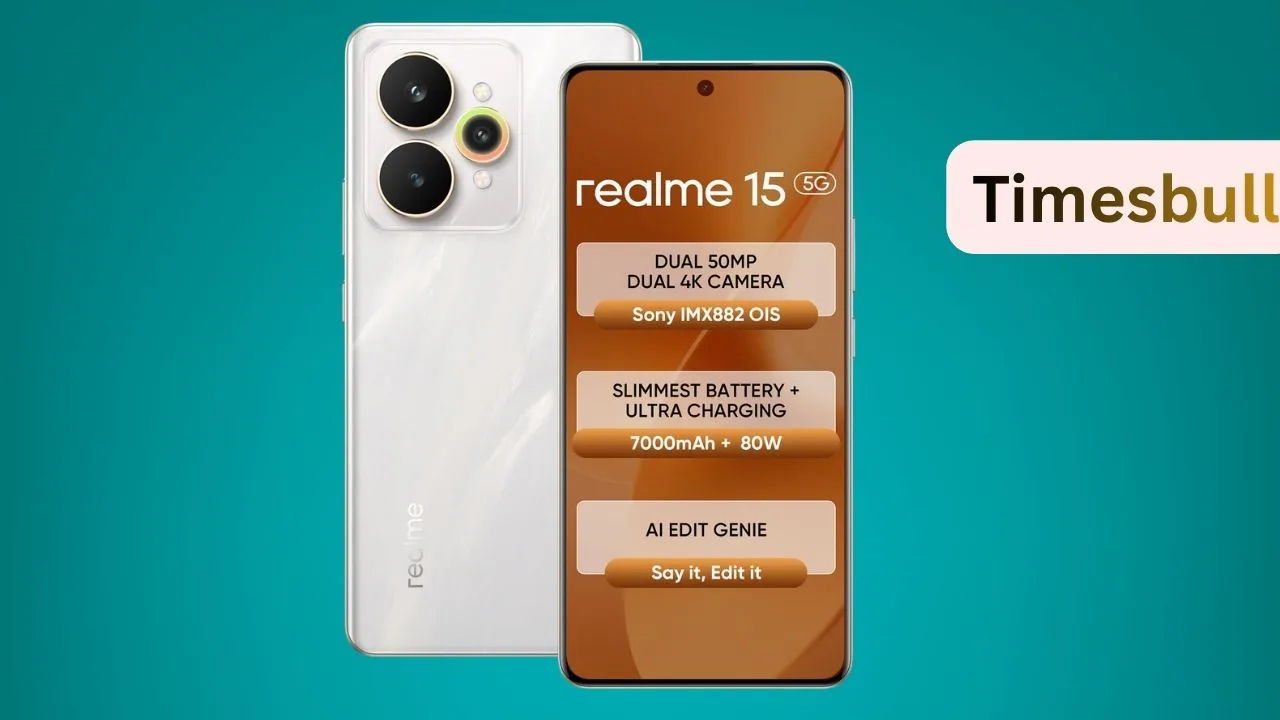 Realme 15 5G phone comes with 50 MP Sony IMX 882 front sensor which supports 4K recording, where as in rear section it has 50 MP OIS main camera plus 8 MP Ultra wide lens. The phone also features a massive 7000 mAh battery pack with 80W SuperVOOC charging.