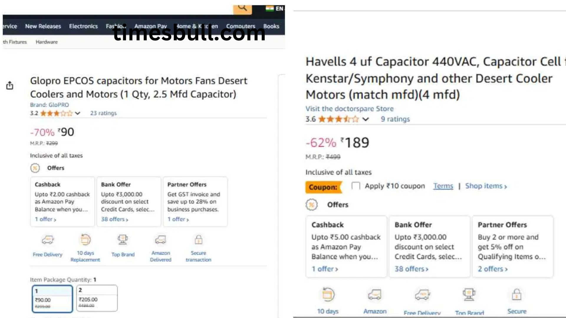 Fan capacitors can be purchased online and offline, albeit the price of purchasing one online may be more than that of purchasing one offline. If you purchase a capacitor from Havells, you could have to pay Rs 189, whereas the cheapest one is on Amazon for Rs 90.