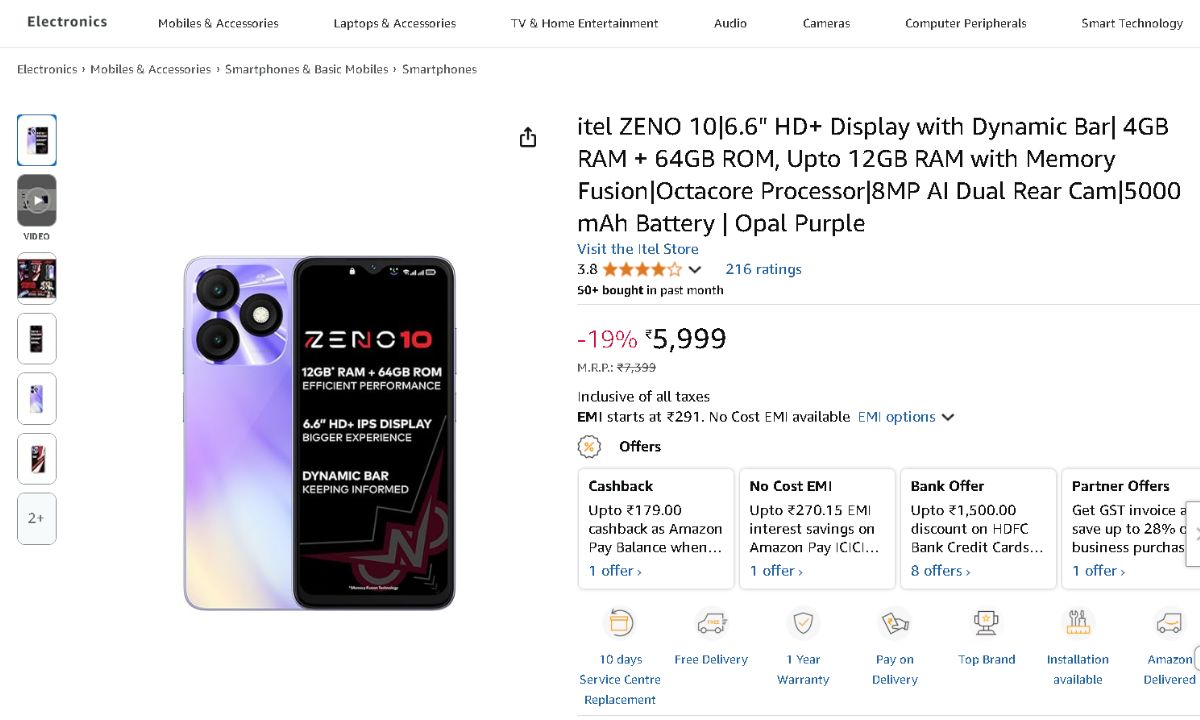 Itel Zeno 10: The Itel Zeno 10 may be a fantastic choice for you if you are searching for a phone that offers strong performance at a very reasonable cost. This phone, which retails for Rs 5999 on Amazon India, has 64GB of internal storage and 4GB of RAM. The company’s phone has 8GB of virtual RAM. This brings the phone’s total RAM to 12GB. You can receive up to Rs 299 in cashback when you purchase this phone. In exchange, this phone may be less expensive. Note that the brand, the company’s exchange policy, and the state of your old phone will all affect the amount of the discount offered by the exchange offer.