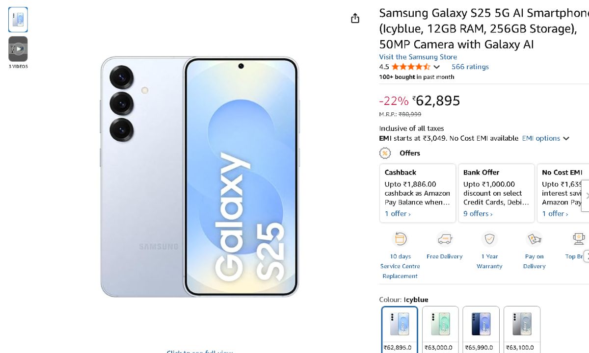 The Samsung Galaxy S25 is on sale for Rs 62,895 during the Amazon Great Indian Festival Diwali special offer, which is Rs 18,104 under its original price. Also, customers can use certain bank cards to receive a bank discount of Rs 1,000, which will reduce the price to Rs 61,895, further sweetening the deal. Also available are EMI plans, with monthly payments starting at Rs 3,049 per month.