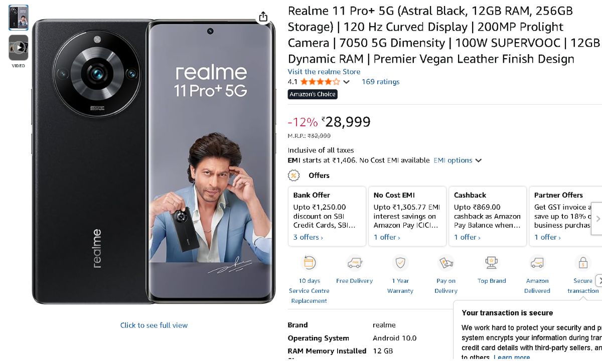 In terms of cost, the Realme 11 Pro+ 5G is priced at ₹29,999 on Amazon. According to the company’s website, it prices ₹27,999. Some banks are offering discounts of up to ₹1,250 during the Great Indian Festival Sale. Cashbacks of up to ₹1,499 are also offered.
