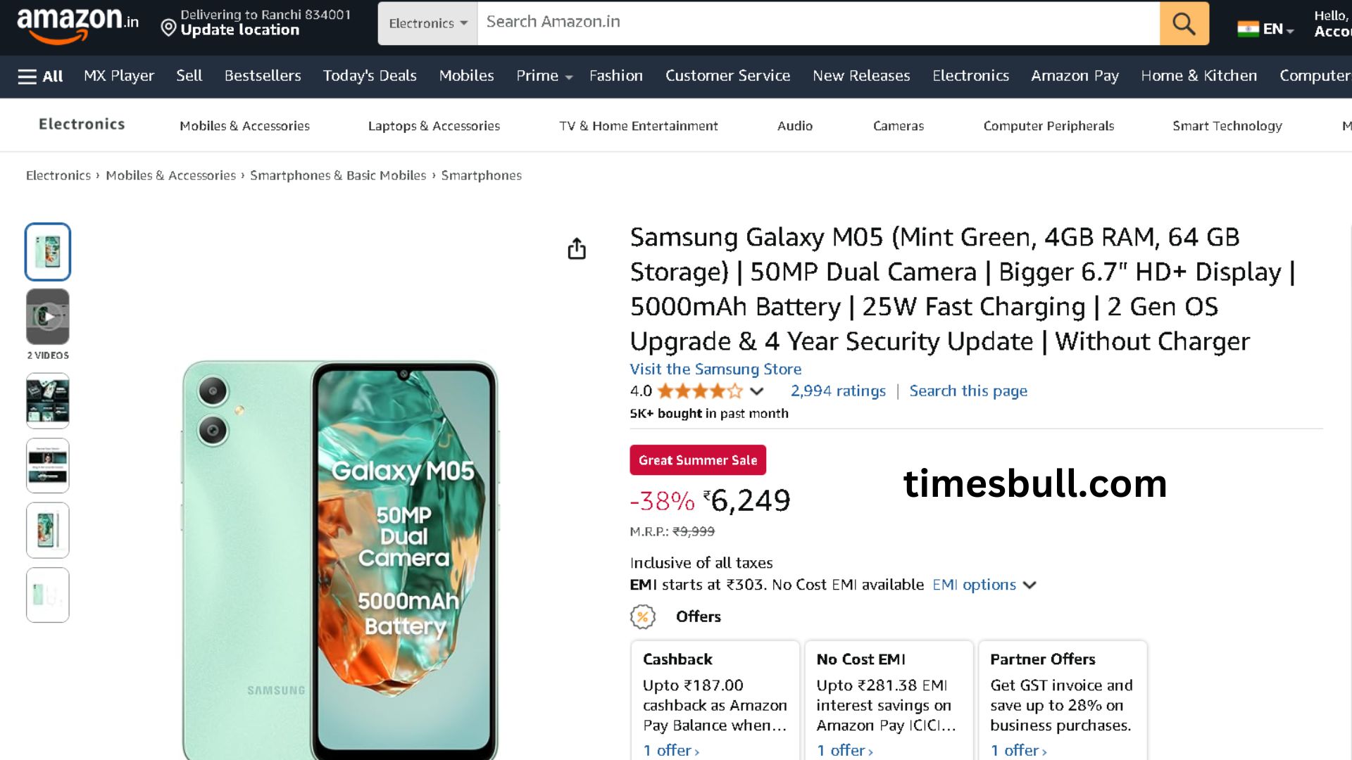 Amazon Great Summer Sale 2025: if you are looking to spend under Rs 10,000 on a new smartphone. We will now share with you a fantastic offer that is now on Amazon. This offer is on an amazing Samsung phone. Features of this Samsung phone include a 5000mAh large battery, a MediaTek Helio G85 processor, and a 50MP camera. Let us discuss details here.