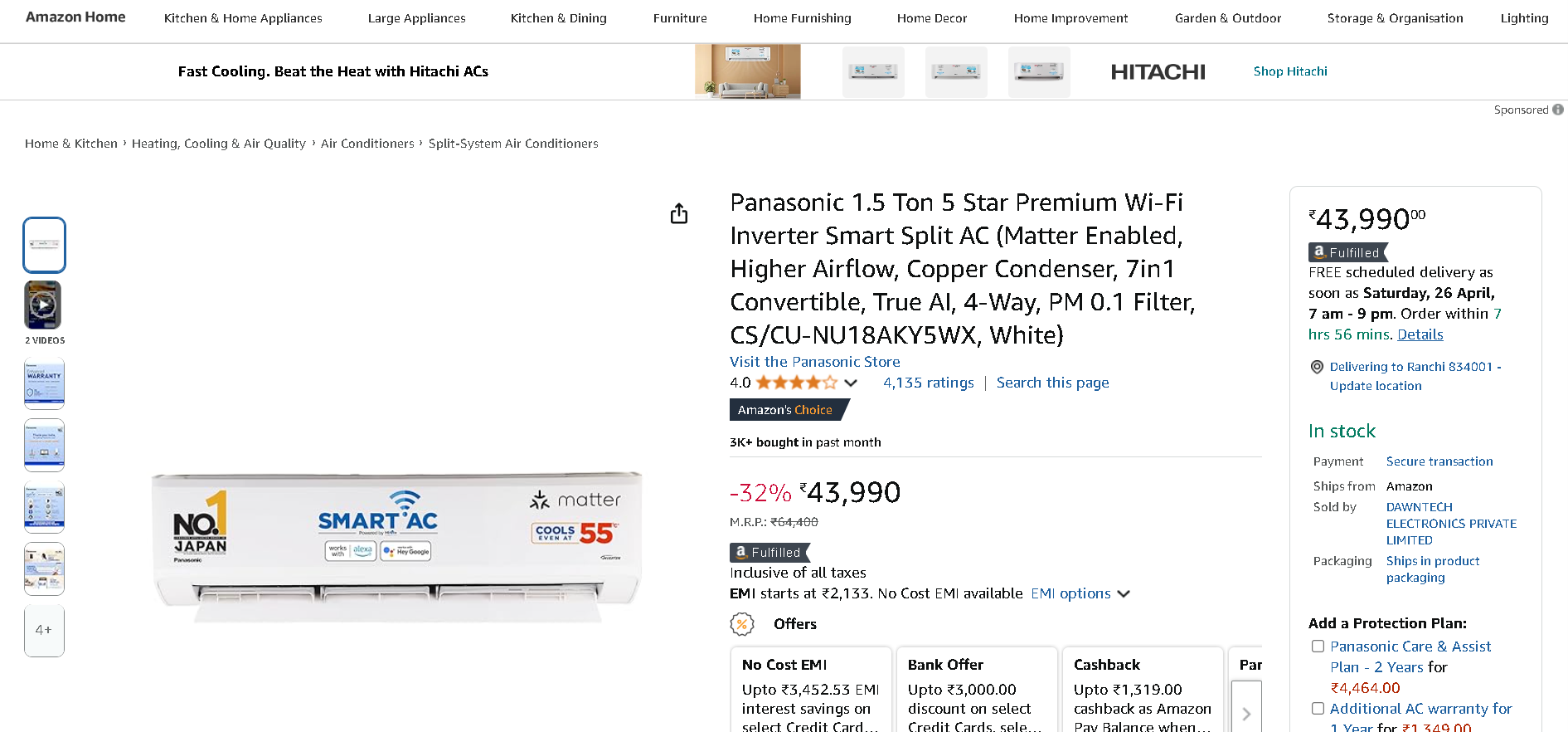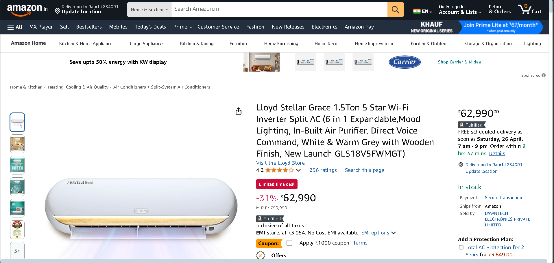 These best air conditioners are also available on Amazon Deals with discounts of up to 31% and attractive benefits. For further discounts, you can also look at bank offerings. They can also be enrolled in an affordable, no-interest EMI. The newest AC models from top brands are included in this list.
