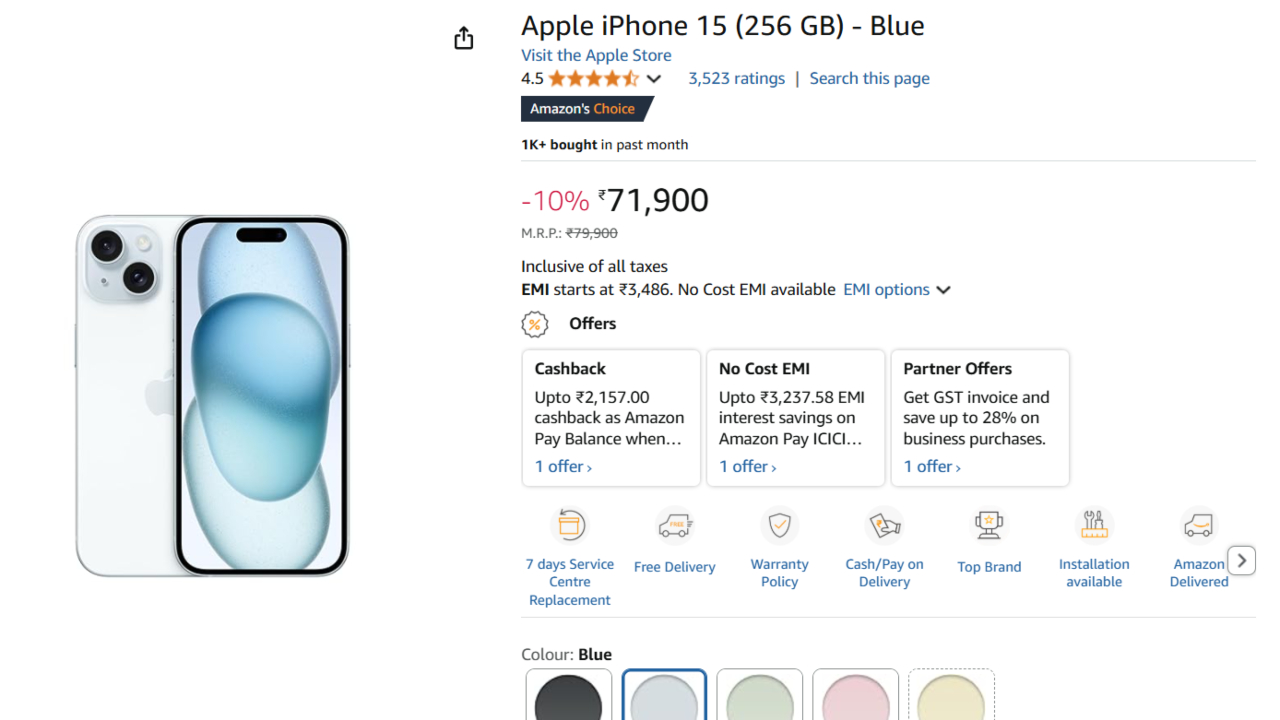 iPhone 15 Price Discount : If you were holding out to buy the iPhone 15, now is your best opportunity. Amazon is giving such a grand discount on Apple iPhone 15 nowadays. Earlier the price used to be ₹79,900 but now you can have it at ₹71,900. That is, a discount of ₹8,000 like this. It’s just ideal for us all who would like to be hi-tech but can’t spend so much.
