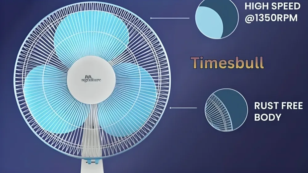 This table fan comes in three colour options, which include Scarlet Red & White, White, and Fiji Blue & White. The brand uses a 55W pure copper motor, and the blades operate silently. It comes with high-speed functioning of 1350 RPM, and it has an inbuilt thermal overload protector and smooth oscillation.