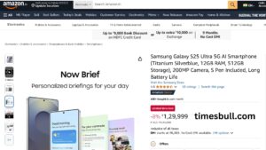 The Samsung Galaxy S25 Ultra 5G model with 12GB RAM and 512GB storage is priced at Rs 1,29,999 on Amazon. Regarding the bank marketing, you can receive a one-time discount of Rs 8,000 when you pay using an HDFC Bank credit card. The final price would be Rs 1,21,999. In addition, the exchange offer can result in a Rs 62,200 savings. Keep in mind that the model and current state of the phone being exchanged determine the offer’s full benefit.