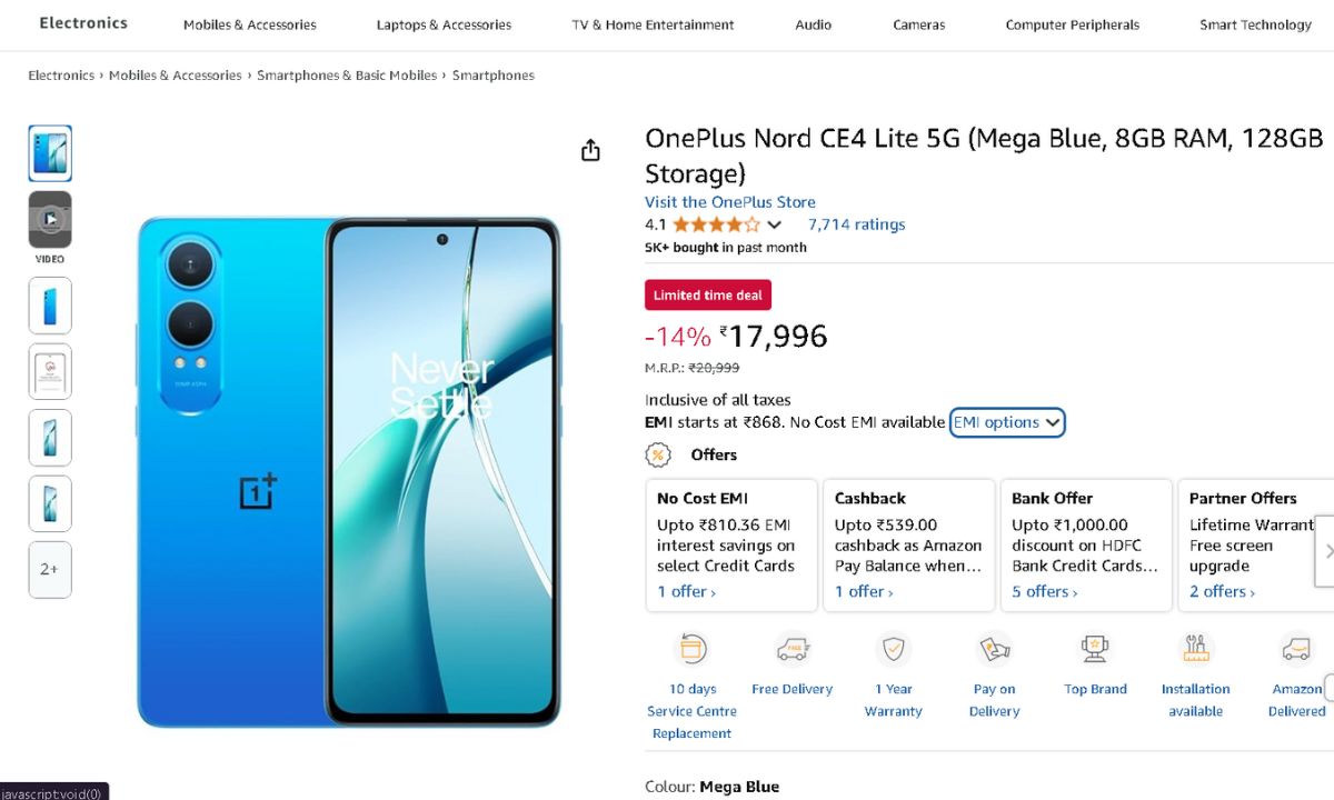 OnePlus Nord CE 4 Lite: There are some excellent offers available if you are considering purchasing a OnePlus phone for between Rs. 15 and Rs. 20 thousand. Amazon India offers the best price on the OnePlus Nord CE4 Lite 5G with 8GB RAM and 128GB internal storage. This phone is available on Amazon India for Rs 17996. You can purchase it during the promotion with a Rs 1,000 bank discount. Also, the company is offering up to Rs 899 in cashback on this phone. The phone’s price can be lowered to Rs 16850 with the exchange offer. Remember that the brand, the company’s exchange policy, and the state of your old phone will all affect the amount of the discount offered by the exchange offer.