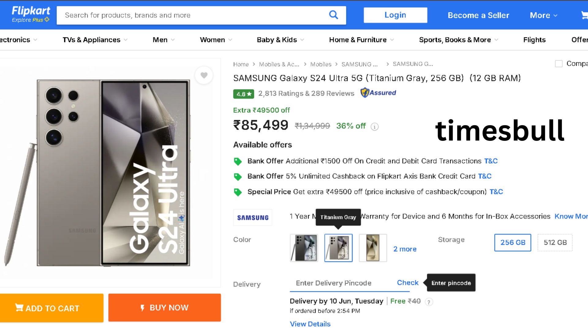 You must go to Flipkart’s official website in order to purchase a Samsung Galaxy S24 Ultra at a discount. This phone may be purchased here for a lower price of Rs 48,000. You can use the Flipkart Axis Bank credit card to receive an infinite 5% discount with the aid of bank promos. The Samsung S24 Ultra with 256 GB of storage costs Rs 89,670 on Amazon, which is Rs 2,671 higher than Flipkart’s price.