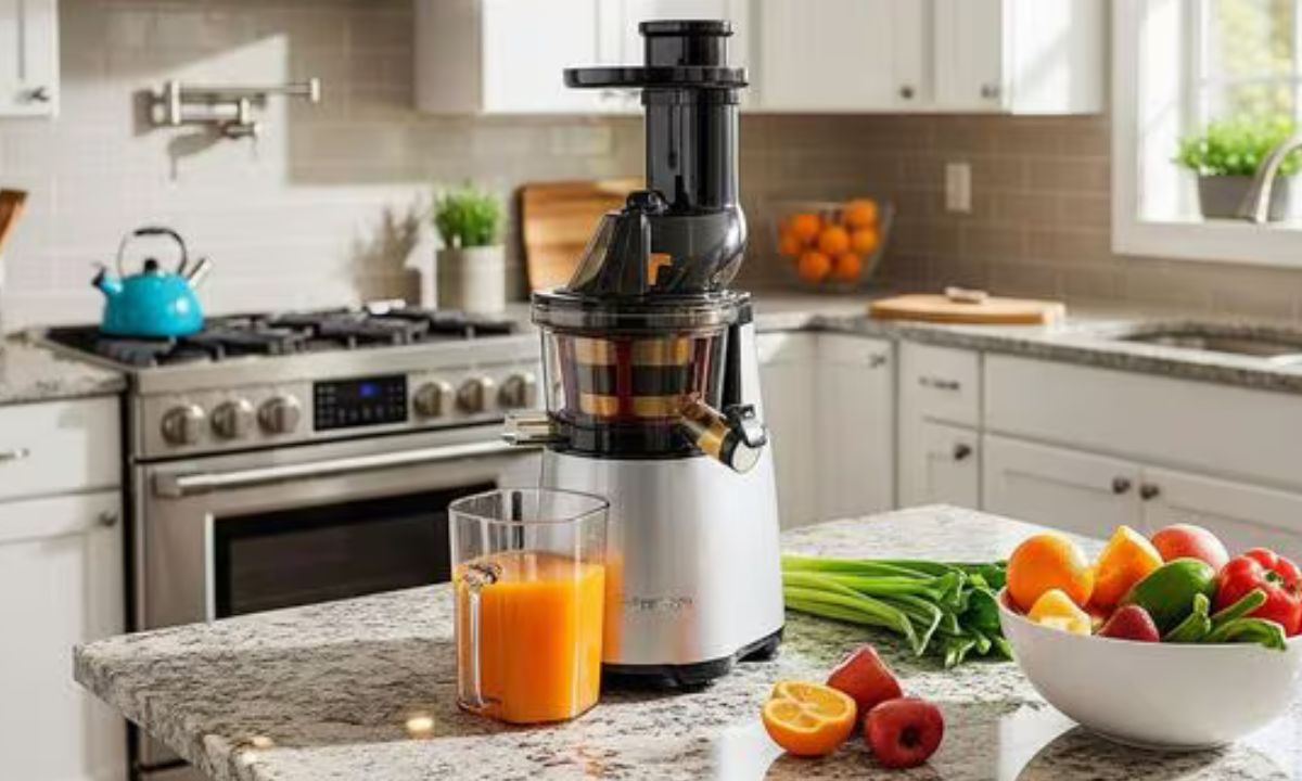 This Hestia Cold Press Slow Juicer, which has a 240-watt power motor and proprietary auger technology, can extract three times as much juice as an average juicer. This juicer also comes with three strainers. This juicer is of excellent quality and can produce nutrient-rich juice. It is regarded as the greatest for juicing quickly. Washing this juicer is also a breeze. You can bring this juicer machine home with you. It comes in red wine, which can also offer the kitchen an elegant look.