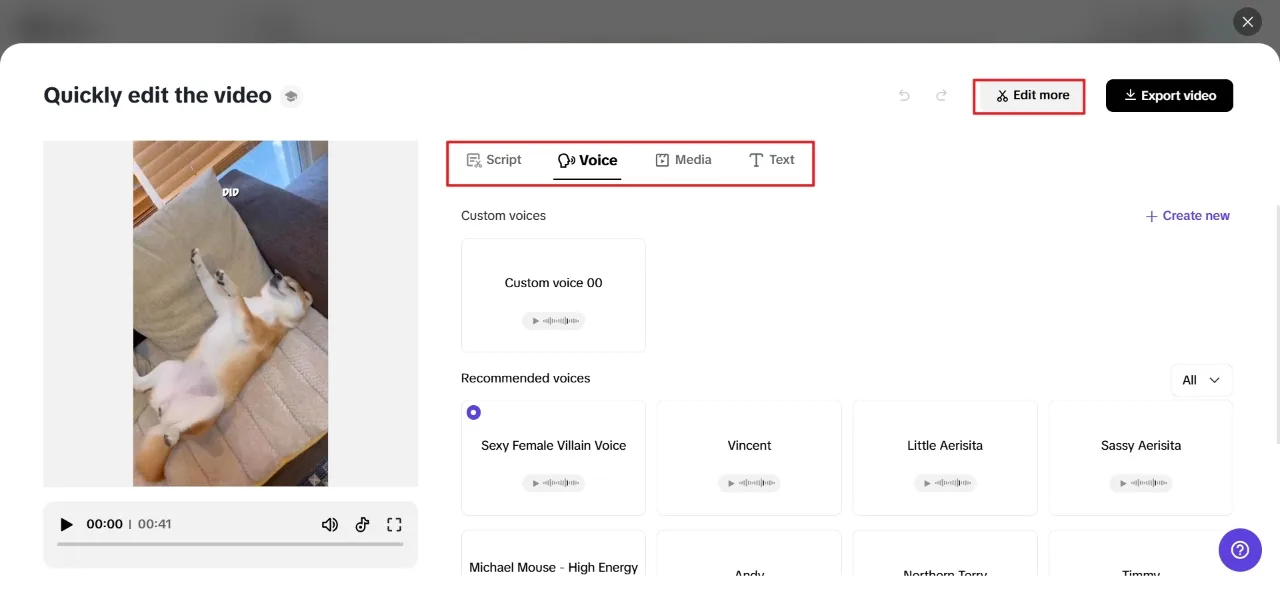 Next, Pippit displays certain video clips and product information in the video template you have chosen. You can choose your video type and customize your preferences, including avatars, voice, ratio, language, and length.